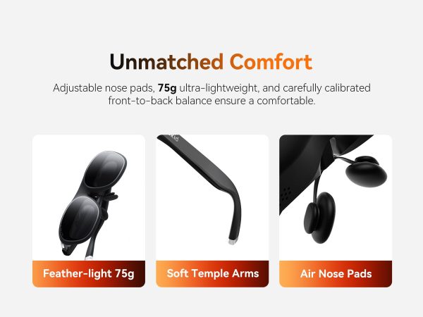 · Experience a stunning 215″ virtual screen at a 6-meter distance, delivering sharp, high-contrast visuals powered by advanced Micro OLED displays.