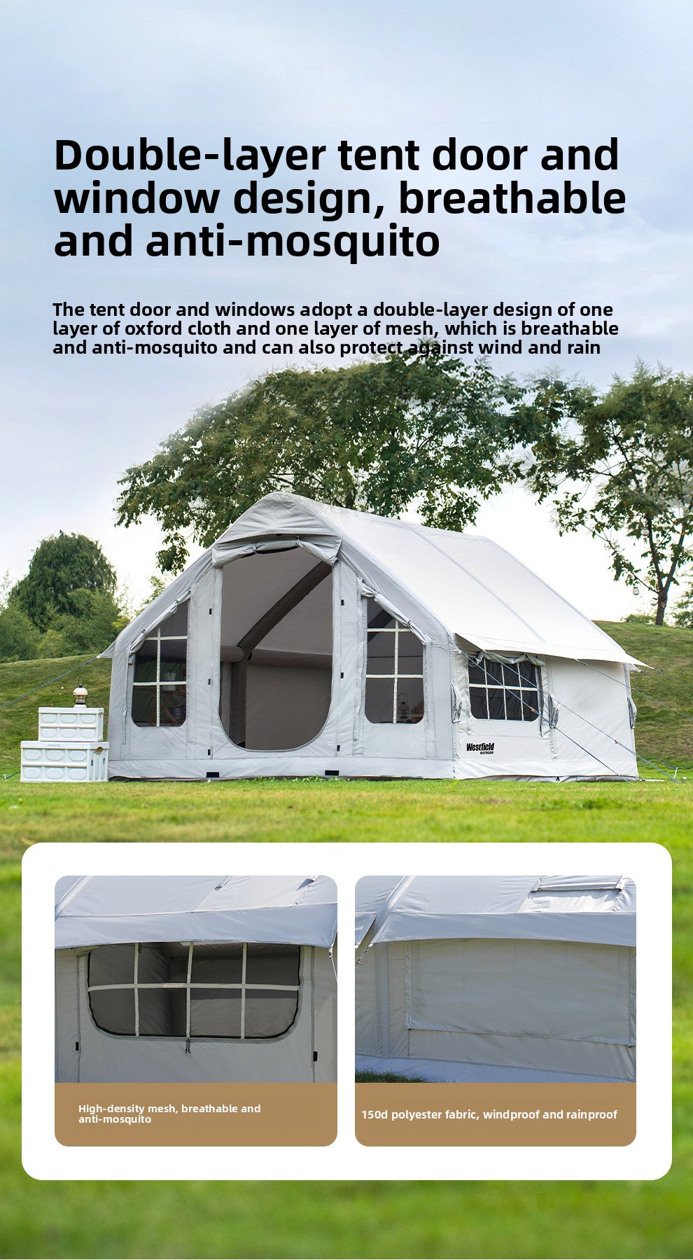 Westfield Automatic Inflatable Camping Tent Large Waterproof Family No Assembly Required Instant Setup Air Pump Included